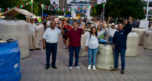 El Senador Víctor Mercado acompaña a la Diputada Federal Ariadna Barrera en la entrega de tinacos para familias de Jiutepec