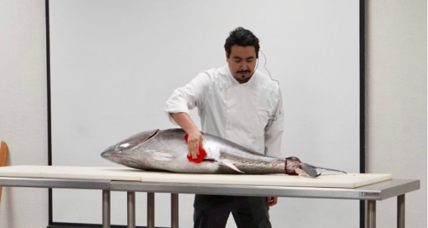 Primer ronqueo de atún durante la jornada académica “Filo y Aleta: Transformando el mar en arte”
