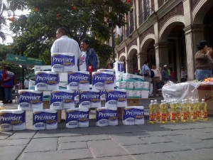 Cerca de las 10 de la mañana comerciantes del mercado Adolfo López Mateos en plena vía pública comenzaron a vender, frutas, abarrotes en plena vía pública afuera de Palacio de Gobierno. El dirigente Emilio Rosas Rico dijo que estaban ahí para pedir cuatro cosas: La primera es la reubicación del comercio ambulante, alto a la apertura de megatiendas comerciales, alto a la inseguridad y por último renovar plazas y mercados públicos porque son más de 25 mil comerciantes establecidos los afectados por la competencia desleal de miles de ambulantes que se han apoderado del centro histórico sin que la autoridad haga algo para frenarlo.