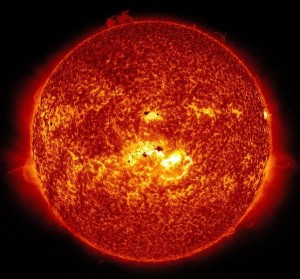 En mitad del Sol, apuntando directamente hacia la Tierra, ha surgido una gigantesca mancha solar, una región más fría y con gran actividad magnética denominada AR 1944, que el pasado lunes lanzó una potente llamarada de tipo X1.2, de las más poderosas.