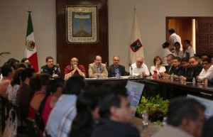 El gobernador Graco Ramírez, acompañado de la presidenta del DIF estatal, Elena Cepeda, el Secretario de Gobierno, Jorge Messeguer Guillén, y de María del Socorro García Quiroz, directora general de la Administración del Patrimonio de la Beneficencia Pública del gobierno federal, asistió a la firma de constitución del Patronato para la Beneficencia en Morelos.