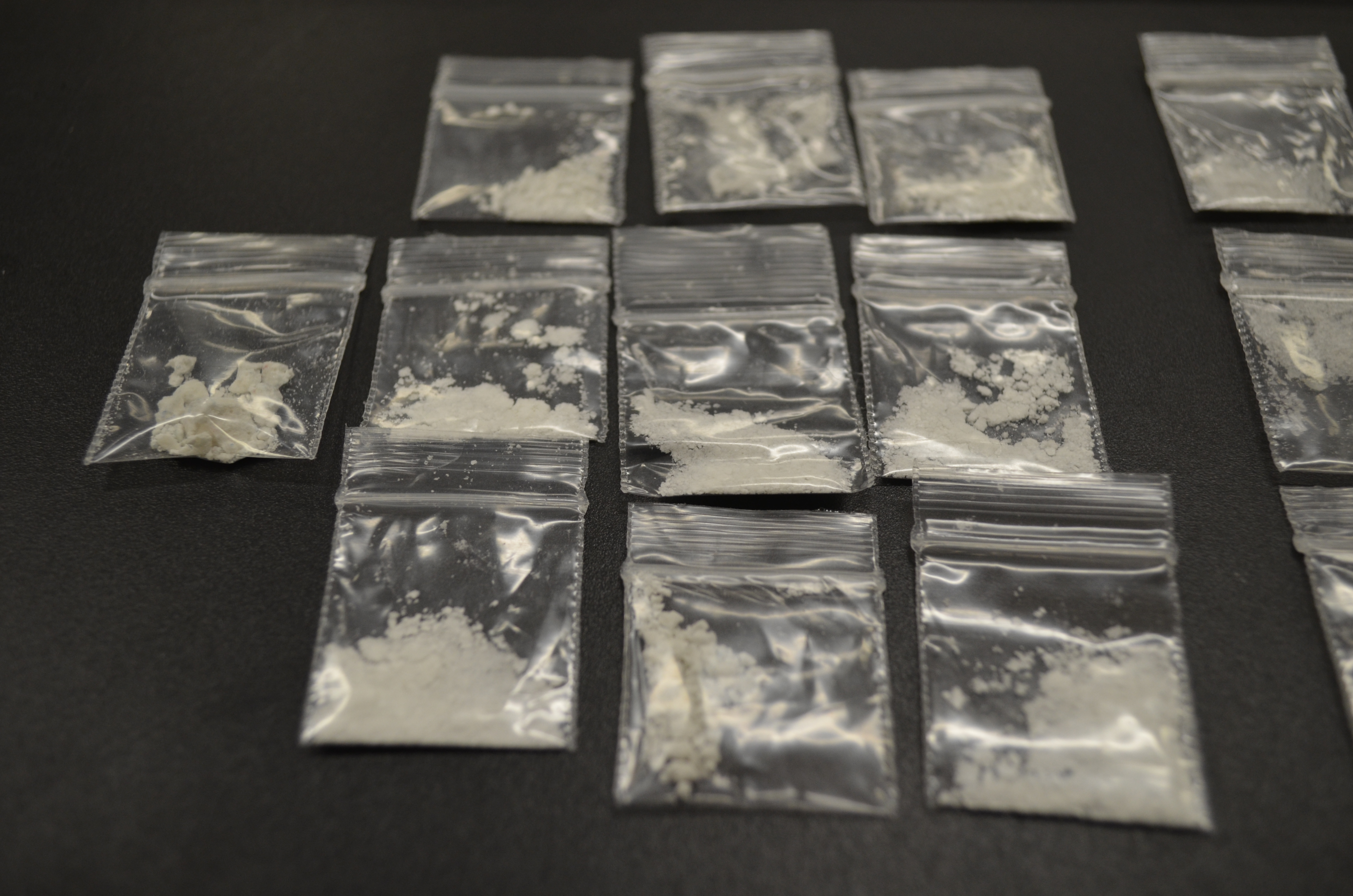 Al realizarle una revisión, se le encontró en posesión de dos envoltorios de plástico que contienen polvo blanco con las características similares a la cocaína y tres envoltorios que contienen un sólido transparente con las características similares al cristal.