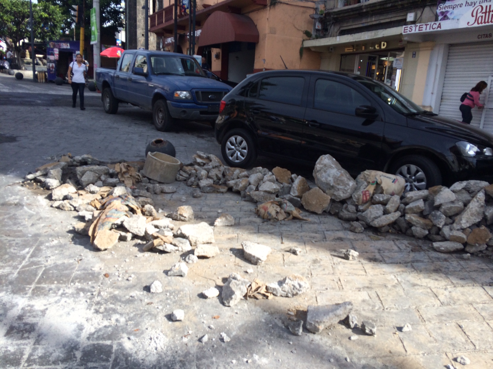 A pesar de que la calle Ricardo Linares de Cuernavaca, que atraviesa justo afuera del restaurante Las Mañanitas, fue remodelada hace menos de un año, este día las cámaras de Zona Centro Noticias captaron como ya presenta daños.