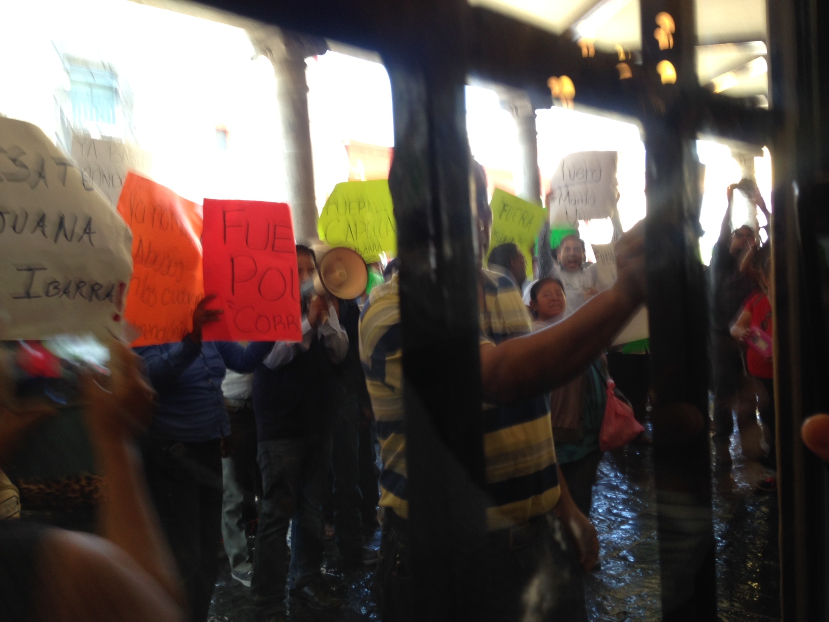 Sin embargo, poco se habló de cifras e inversiones, e iniciaron las acusaciones y alusiones personales. Asimismo los asistentes en el pleno hacían rechiflas constantes y gritos en contra de Capella Ibarra, mientras que al exterior, las manifestaciones contra el Mando Único, se salieron de control y algunos inconformes empujaron puertas y rompieron algunos vidrios para intentar ingresar, por lo que a propuesta del diputado Jaime Álvarez Cisneros se canceló la sesión.