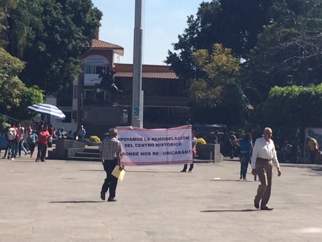 Esta mañana comerciantes ambulantes del primer cuadro de Cuernavaca apoyados por el Nuevo Grupo Sindical se manifestaron con lonas y pancartas en todo el centro donde señalaban estar de acuerdo en la remodelación del centro histórico pero exigían ser reubicados.