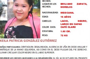 Eva González Gutiérrez madre de la adolescente Keila Patricia González Gutiérrez de 16 años de edad, pide la ayuda de las autoridades estatales, para encontrar a su menor hija, quien afirma «se la llevó Antonio López Santos de 40 años de edad, hermano de Felipe dueño de la frutería donde ...