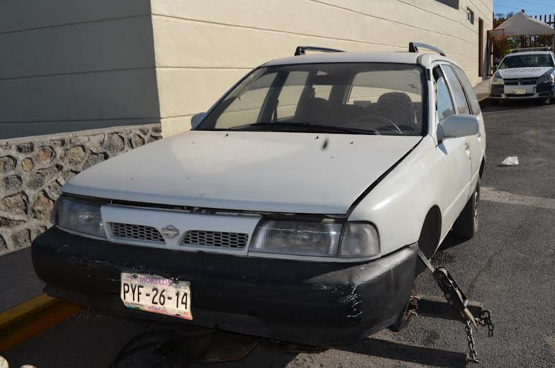 Por último en la calle Lirio del Municipio de Emiliano Zapata los policías del lugar «aseguraron», un vehículo Nissan, Tsuru Vagoneta, color blanco, con placas PYF-2614 del Estado de Morelos, por contar con reporte de robo vigente, sin que tampoco se especificó si estaba abandonado, estacionado o que había pasado con el conductor.
