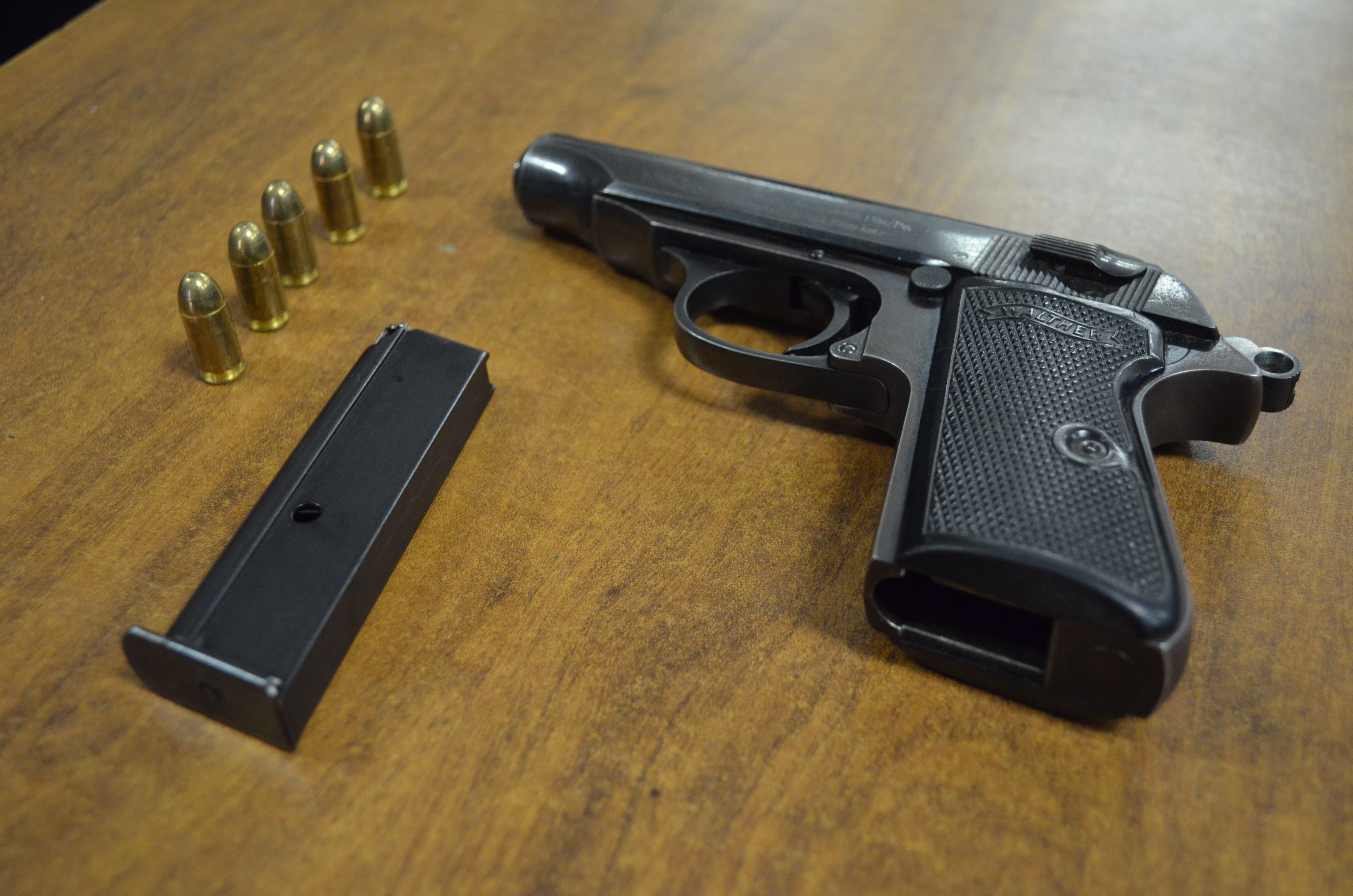 Al abrir la puerta del tráiler, observaron que el copiloto sujetaba un arma de fuego y amagaba al chofer, motivo por el cual los policías realizaron las medidas de seguridad necesarias para asegurar el arma marca Walter, calibre .9mm, de color negro, matricula 27500A, con un cargador metálico color negro abastecido con cinco cartuchos calibre .380mm.