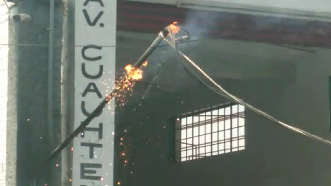 Las unidades de protección civil acudieron y confirmaron que cables estaban haciendo corto por lo que la zona fue acordonada para evitar riesgos a la población.