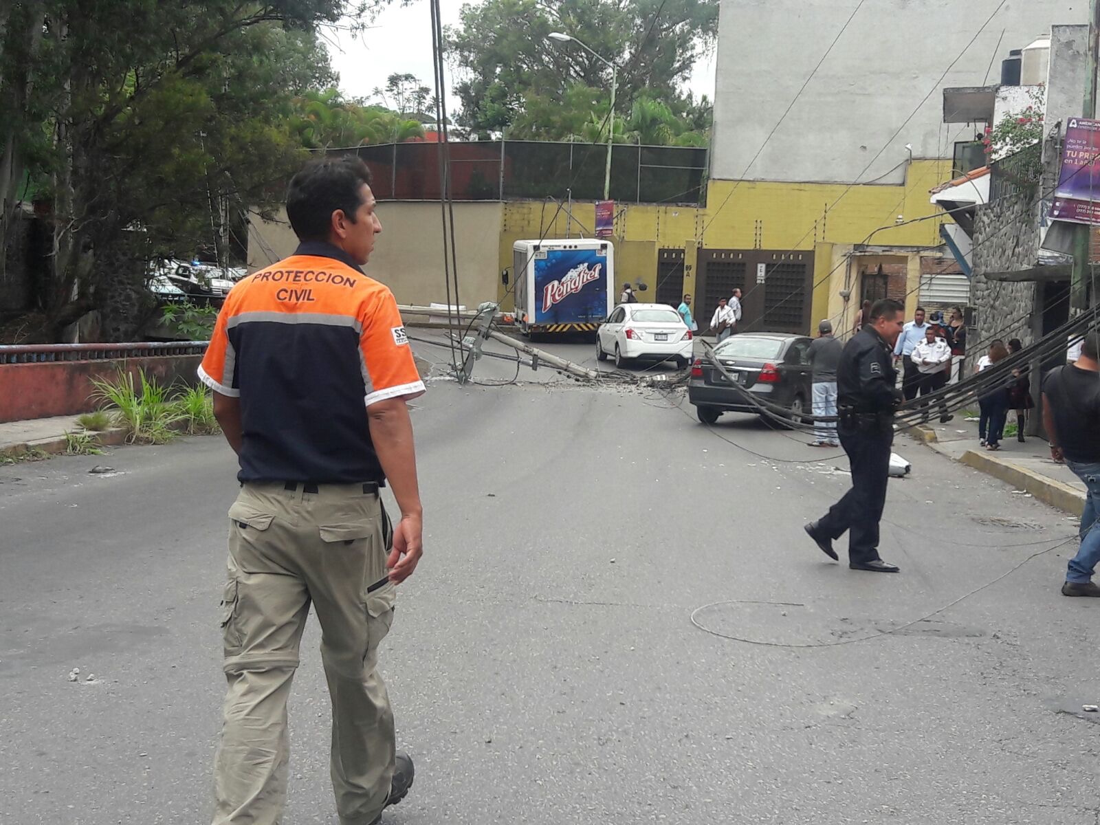 El camión se llevó a su paso dos postes de energía eléctrica de la Comisión Federal de Electricidad (CFE) por lo que la zona se quedó sin energía eléctrica y permanecerá cerrada las próximas horas para hacer el levantamiento de los postes y retirar los cables.