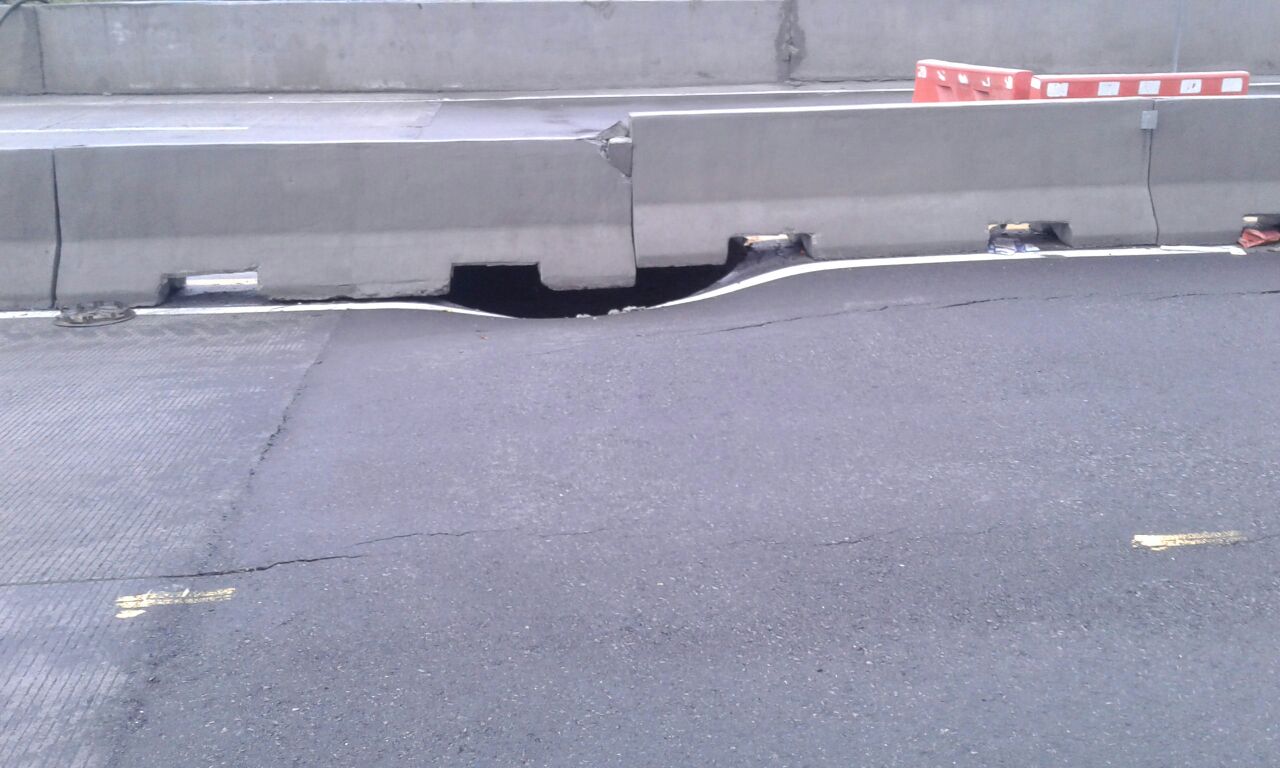 Antes de las 6 de la mañana se registró un hundimiento sobre el Paso Express de Cuernavaca a la altura del CONALEP de la colonia Chipitlán.