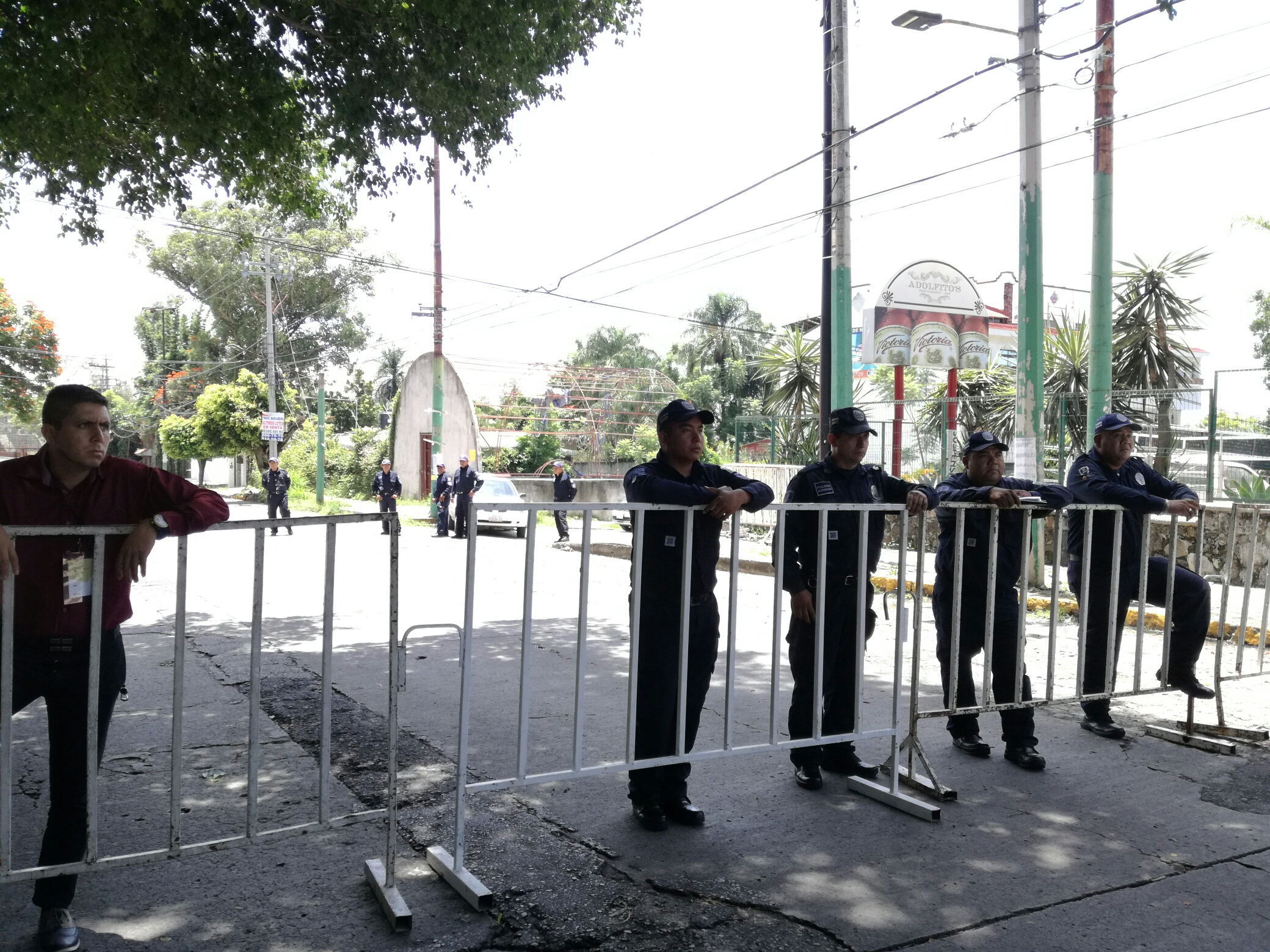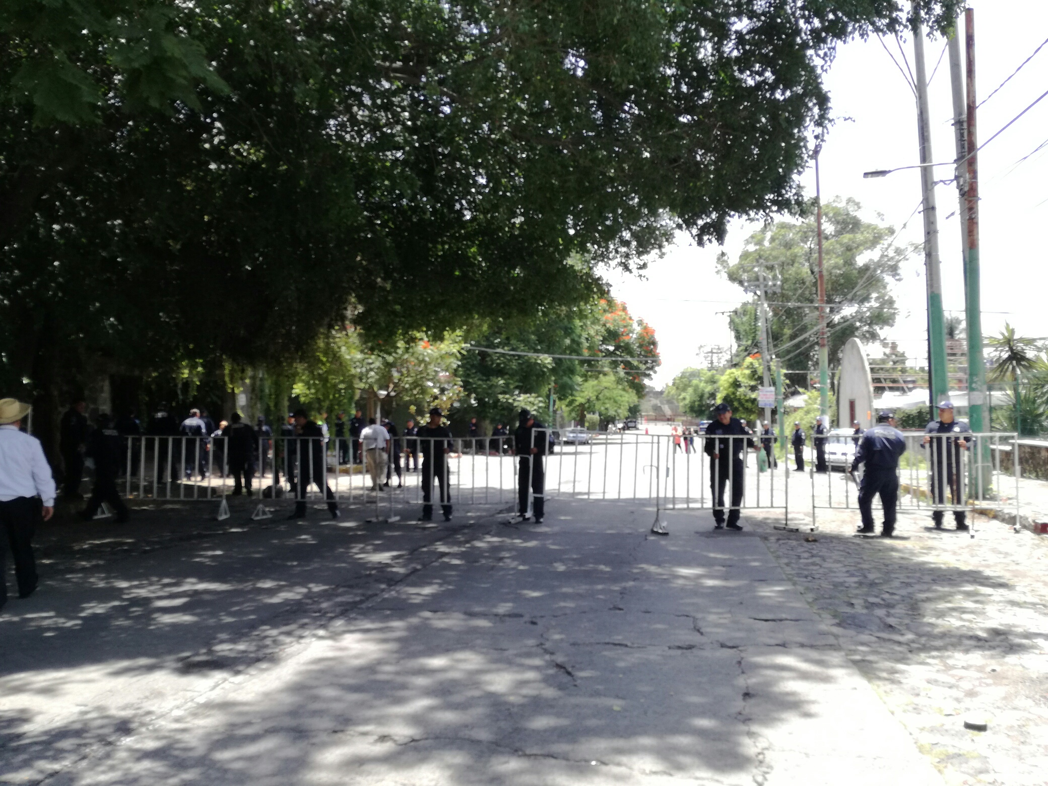 La totalidad de las calles que se dirigen al Centro cultural fueron cerradas por vallas, asi como elementos de la Policía Morelos, policía vial de Cuernavaca y hasta supervisores de transporte público que con sus unidades, patrullas y otros elementos realizaban el cierre de las vialidades.