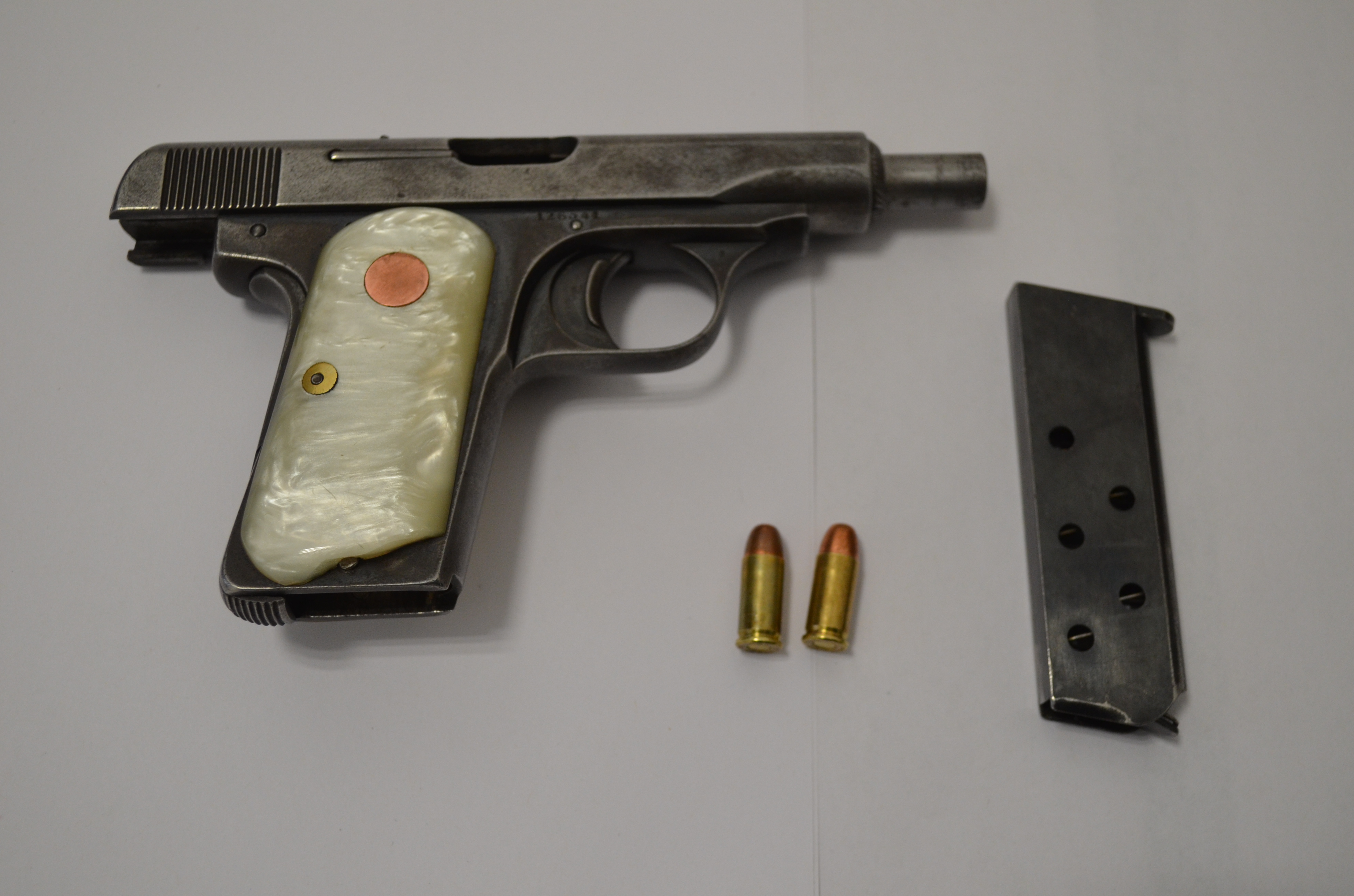 Por tal motivo se detuvo a José “N” de 27 años de edad, a quien le encontraron un arma de fuego tipo pistola con la leyenda grabada Fabrique Nationale Darmes de Guerre Herstal Belgique Brownings Patent Depose calibre 32, con cachas color nácar, con un cargador abastecido con un cartucho útil y uno más en la recamara cal. 32/ 7.65mm.