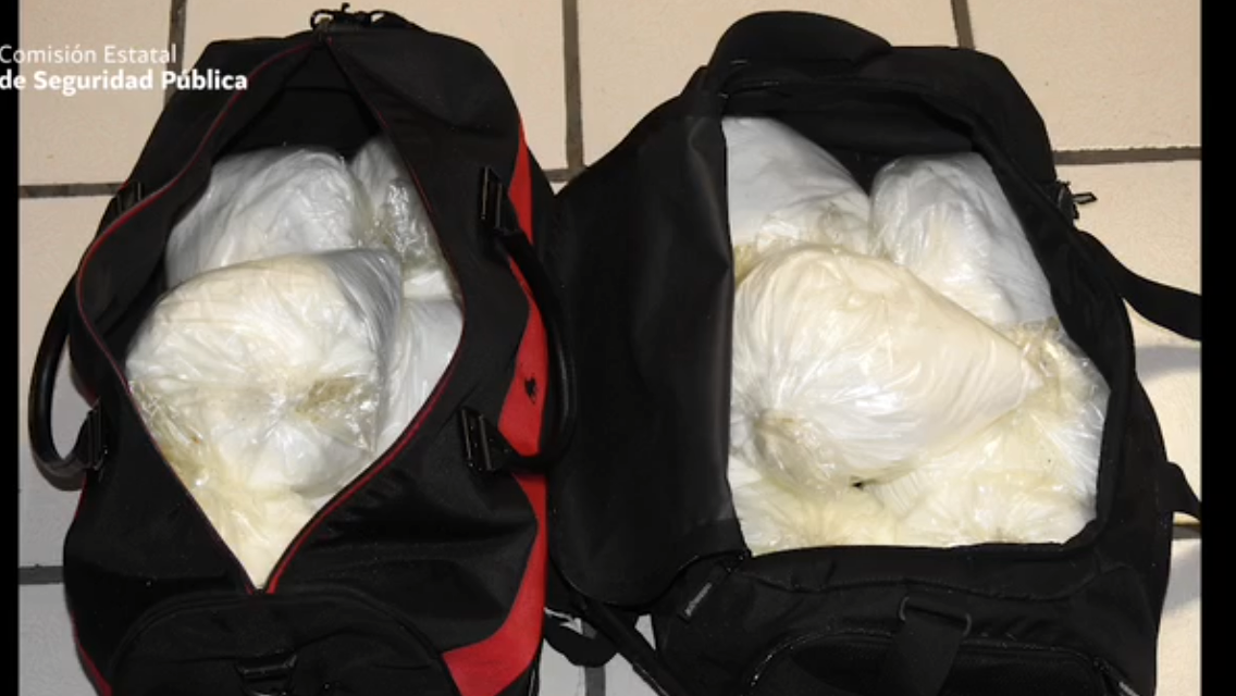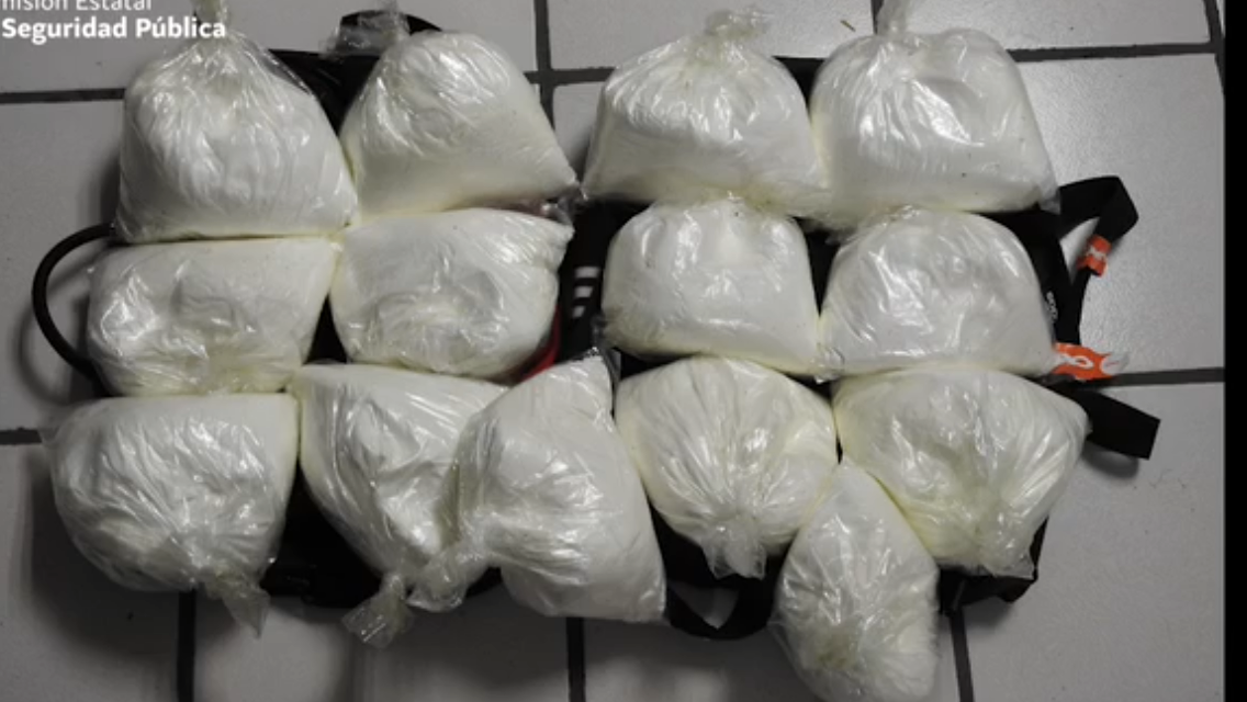 De inicio el comisionado dijo que en la terminal de autobuses de Oaxtepec, municipio de Yautepec, luego de que un sujeto había agredió a los guardias de seguridad privada del lugar cuando estos re revisaron unas mochilas que portaba descubriendo la droga, al acudir los policías al auxilio confirmaron que el agresor transportaba 14 bolsas de aproximadamente un kilo de cocaína cada una, siendo detenido Jesús Ángel «N» de 23 años de edad.