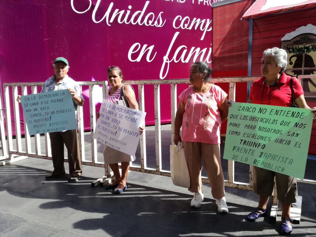 Esta mañana descendientes de combatientes zapatistas y veteranos de la revolución se manifestaron en la Plaza de Armas de Cuernavaca para exigir el pago de una pensión a la cual aseguran tienen derecho