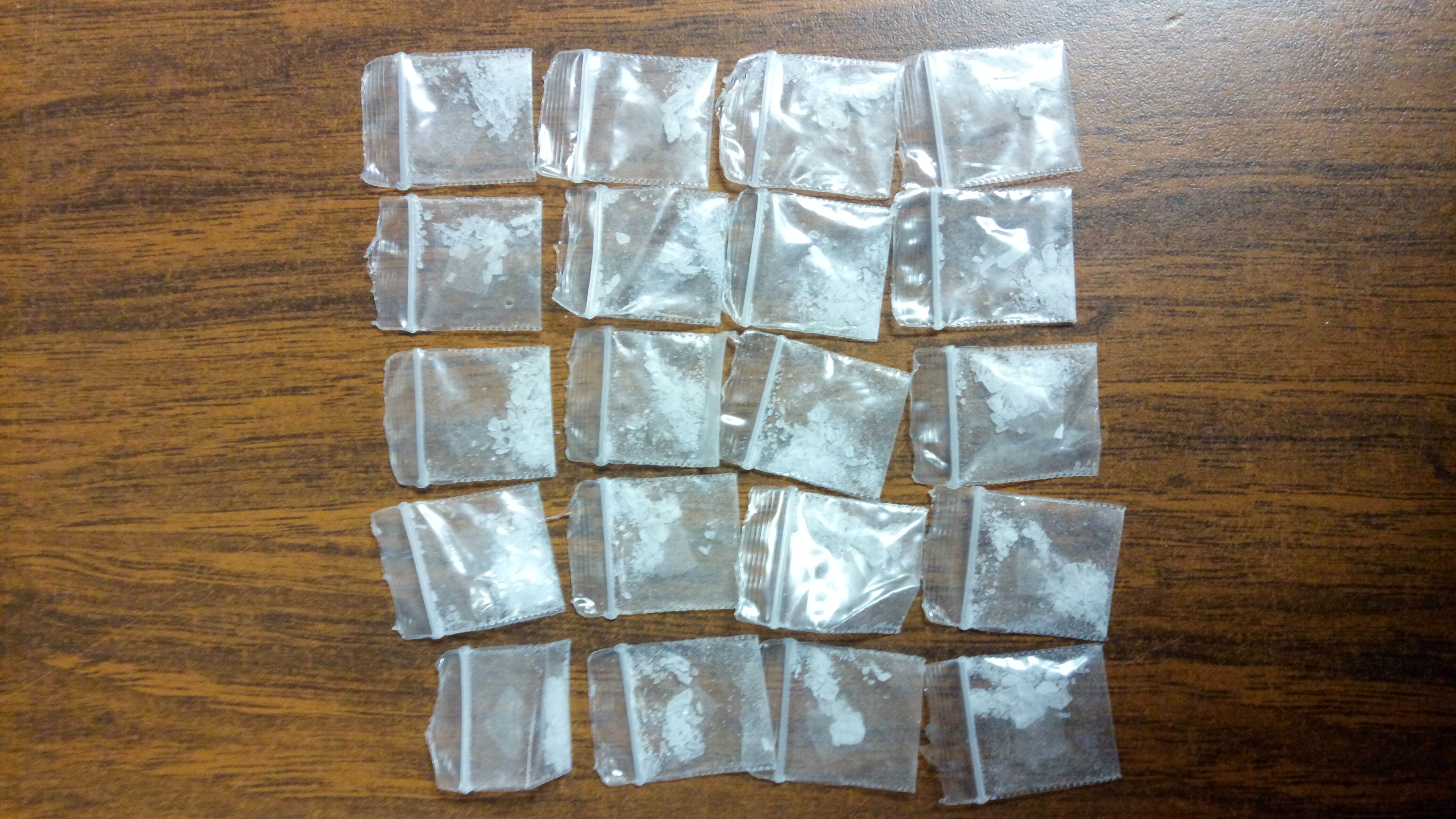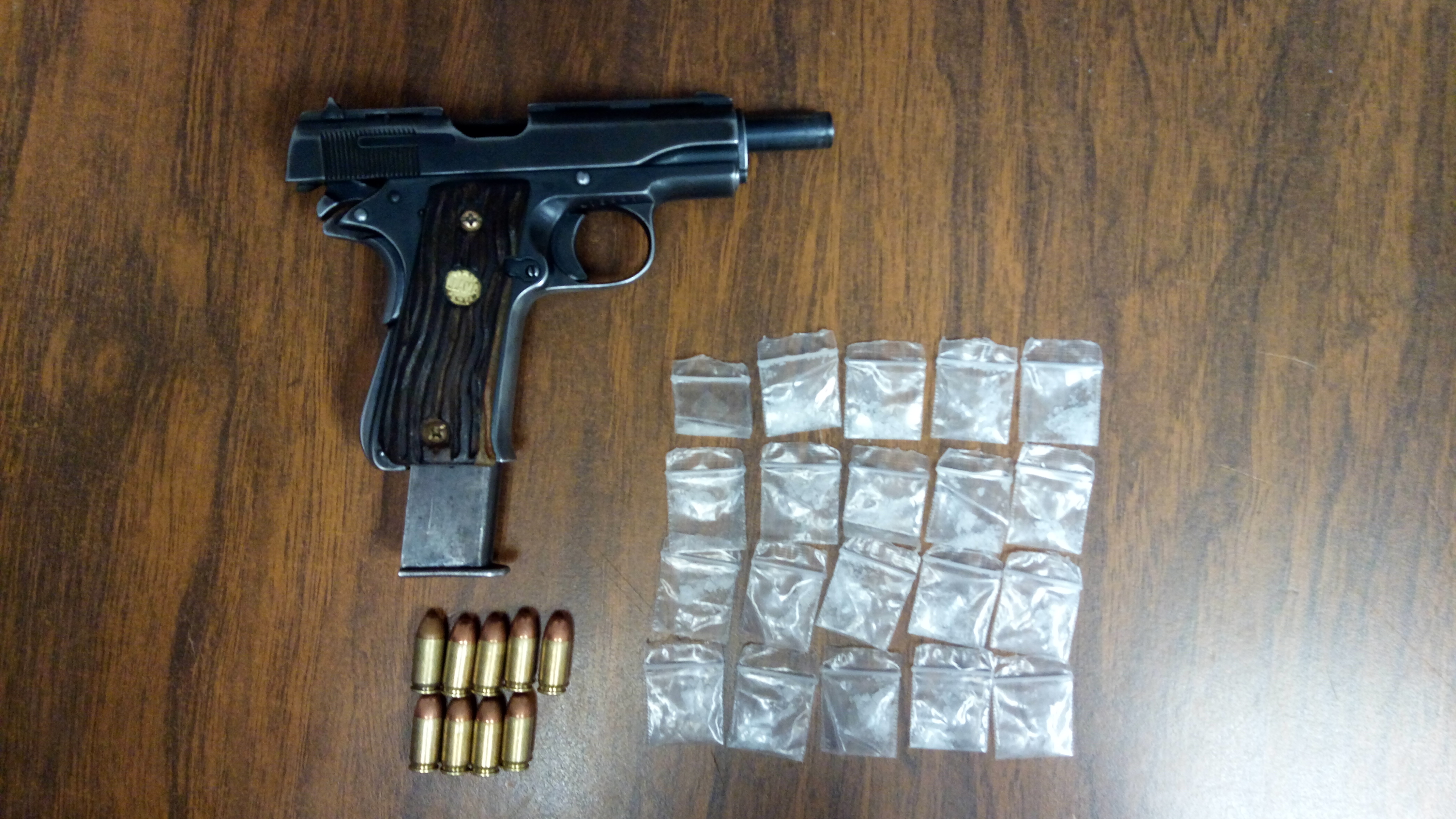 Ante esta denuncia, los oficiales se trasladaron a investigar y en el sitio señalado observaron a los hombres que coincidían con las características reportadas, por lo que al revisarlos les encontraron un arma de fuego calibre .380 milímetros abastecida con nueve cartuchos útiles y 20 bolsitas de plástico con una sustancia sólida con las características similares a la droga conocida como cristal.