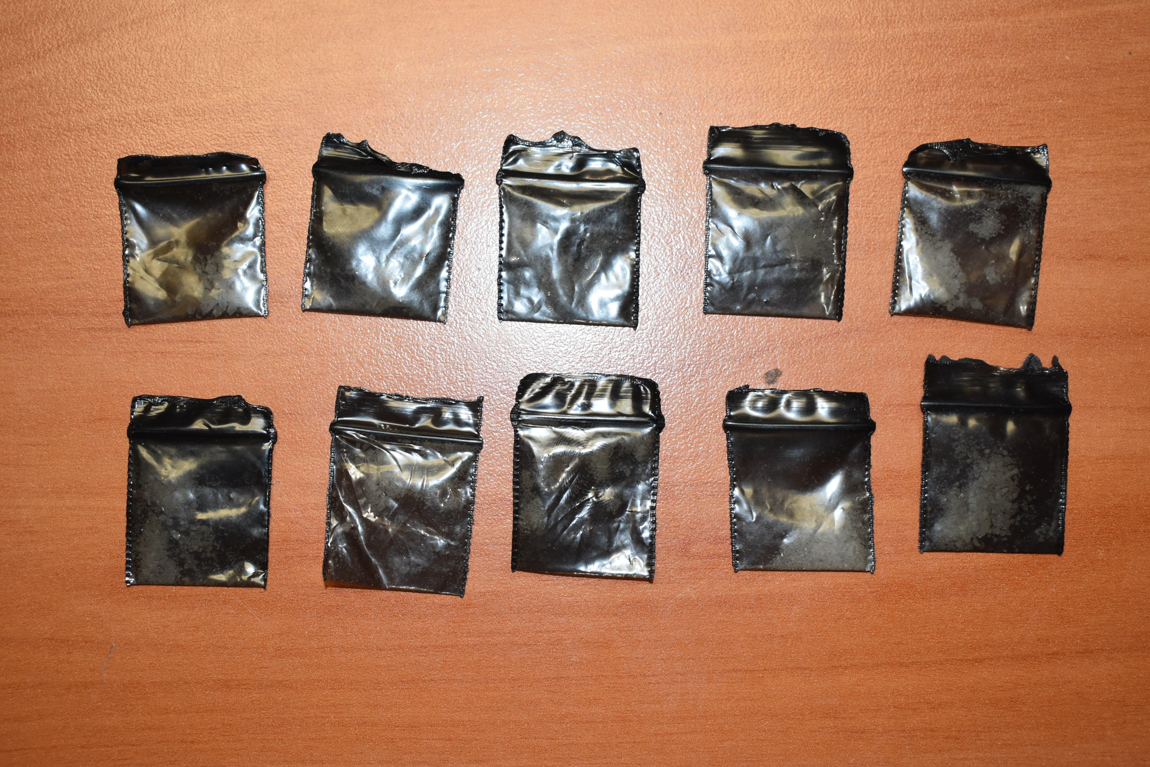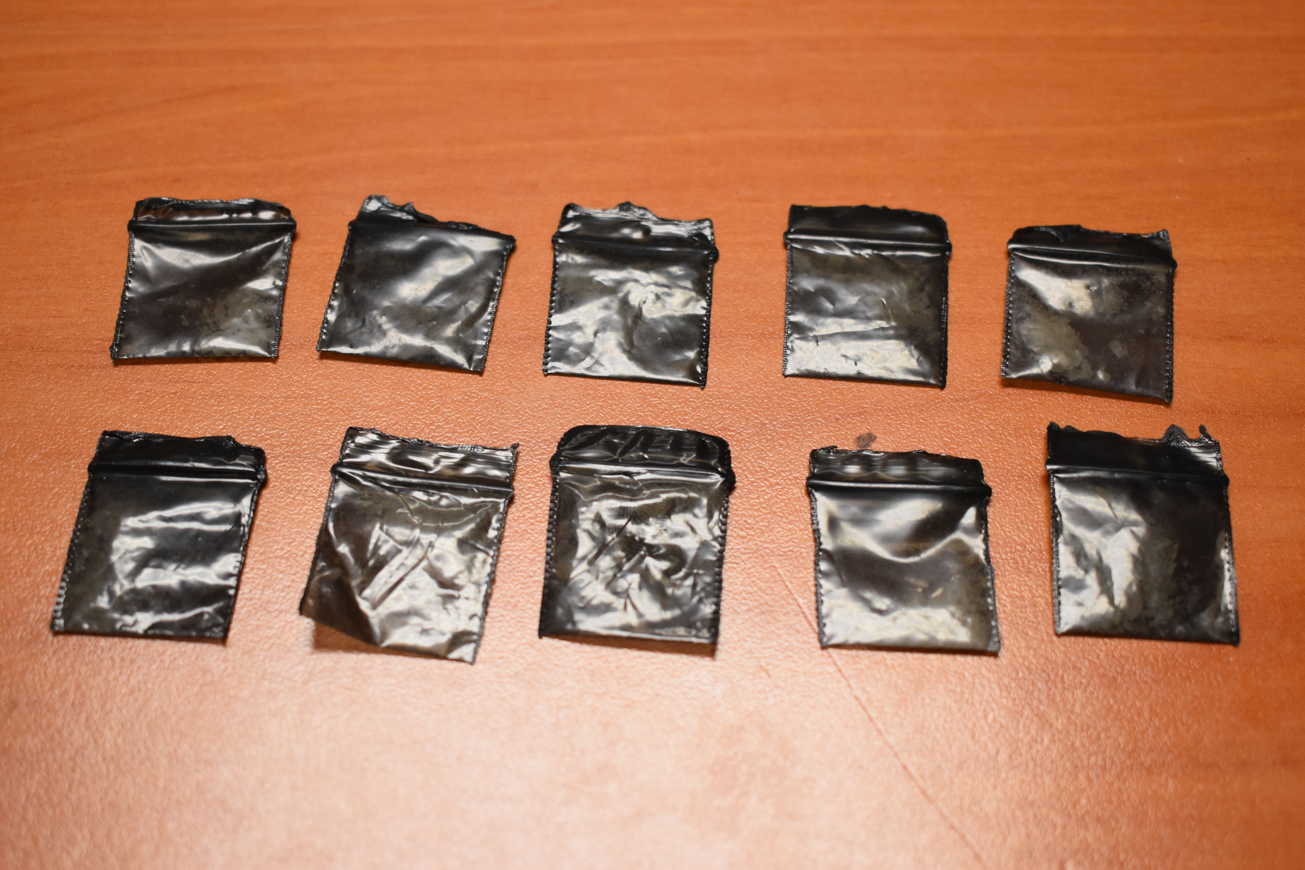 Derivado de lo anterior, los oficiales procedieron a entrevistarse con el sujeto a quien se le solicitó una revisión, encontrándole 10 bolsitas de plástico tipo ziploc de color negro que en su interior contenían un material cristalino con las características similares a la droga conocida como cristal.