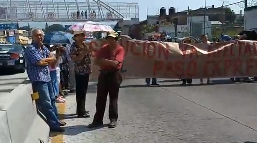 Ante el incumplimiento de la SCT de corregir afectaciones bloquean el Paso Express vecinos de la Flores Magón