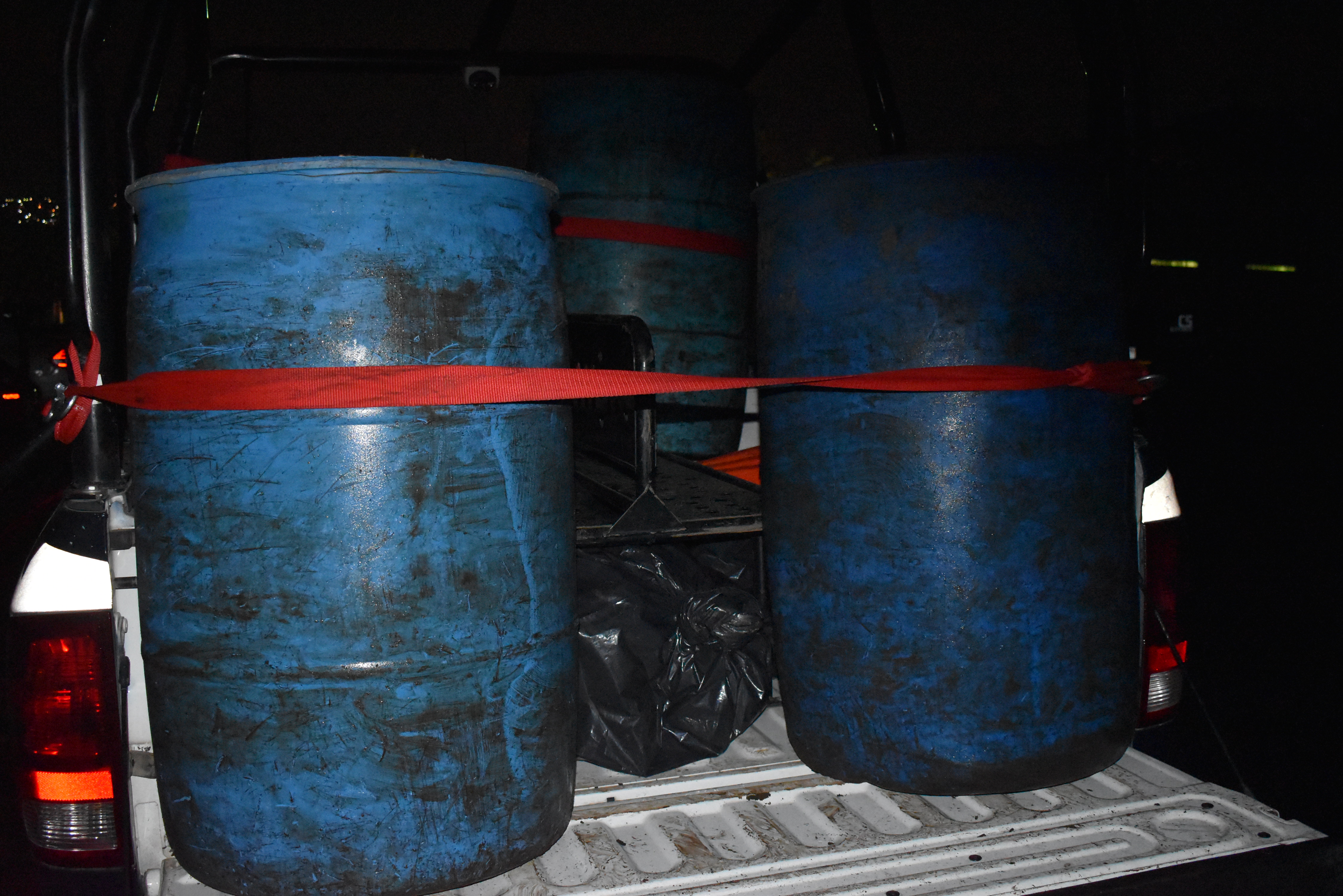 La madrugada de hoy, elementos de la Policía Morelos aseguraron tres bidones con hidrocarburos en el municipio de Huitzilac.