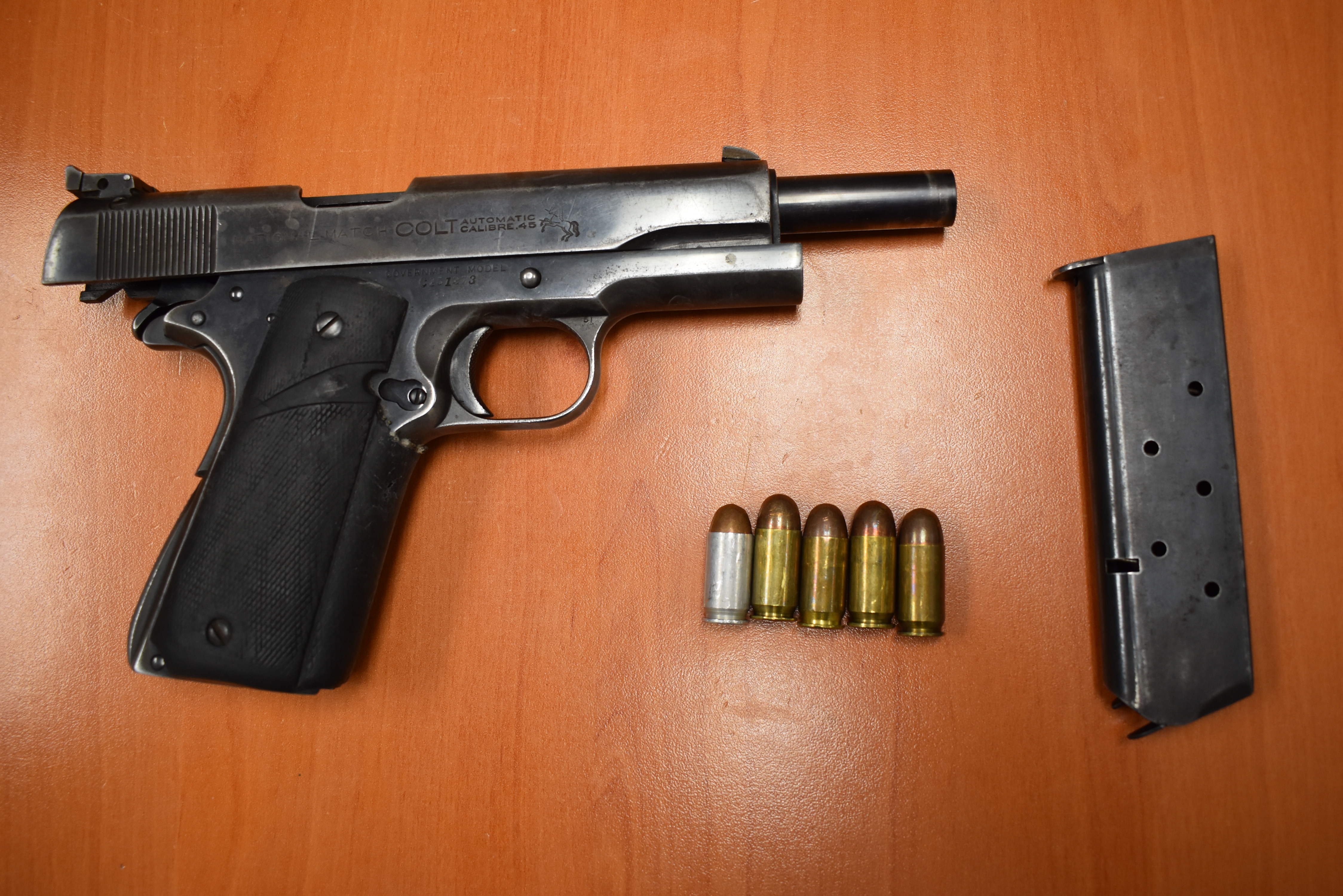Al realizarles una revisión, localizaron en el vehículo marca Ford tipo Ranger con placas de circulación GY1818-B del Estado de México, un arma de fuego corta de la marca Colt, con un cargador abastecido con cinco cartuchos útiles calibre .45 milímetros. Por lo anterior se procedió a la detención de Juan Felipe “N” de 29 años de edad y Sergio Alan “N” de 27 años de edad.