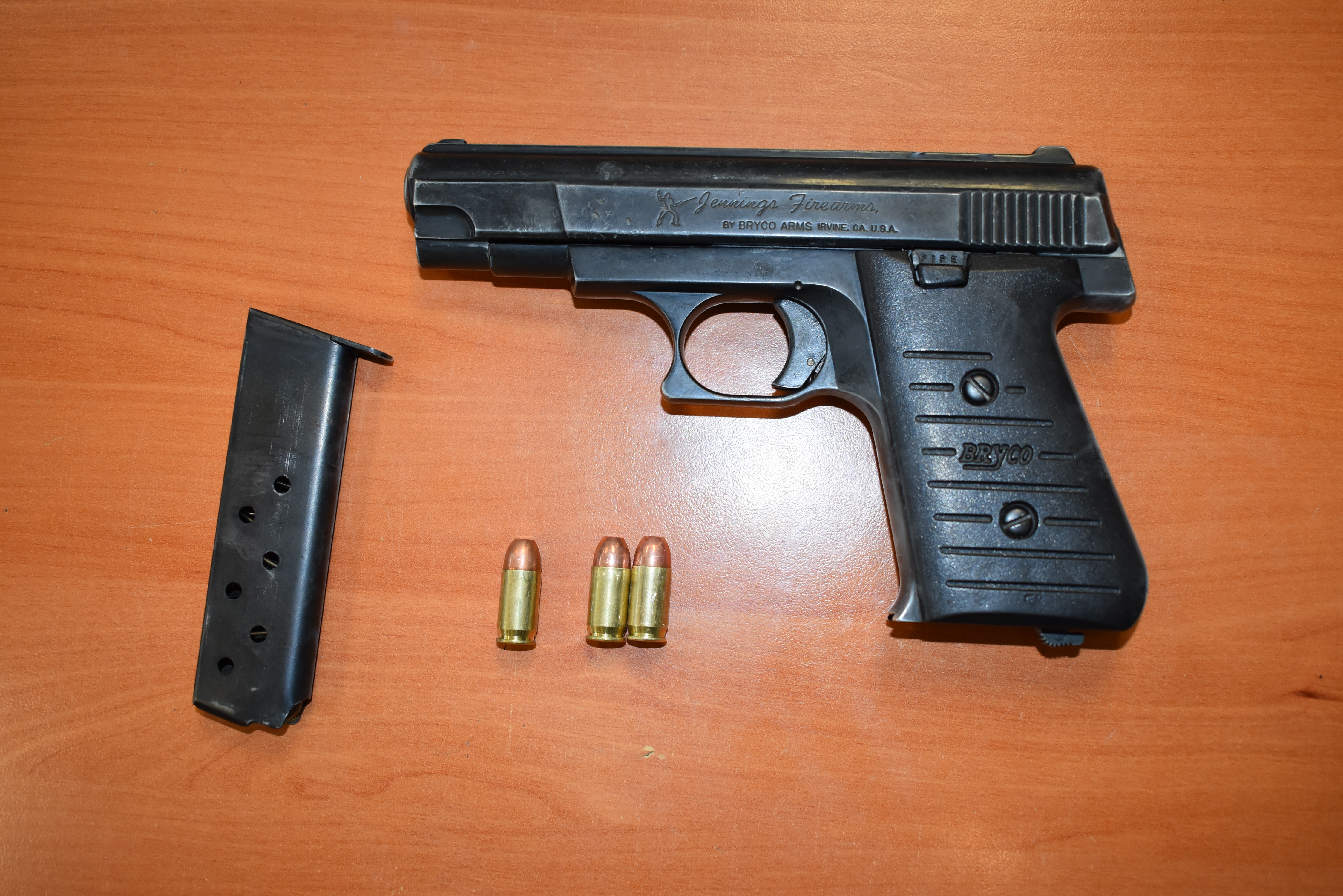 Los oficiales le realizaron una revisión, localizándole fajada en la cintura un arma de fuego calibre .380mm, con un cargador metálico con tres cartuchos útiles, por lo que se procedió a la detención del menor de 17 años de edad.