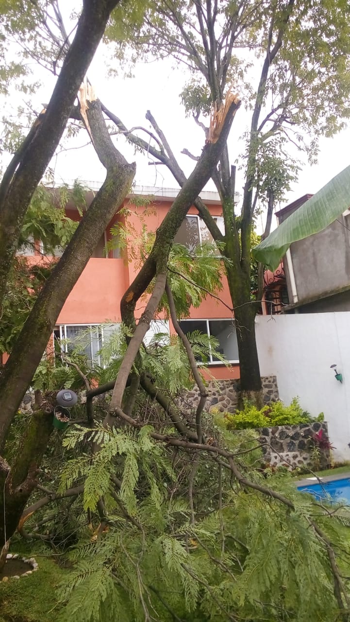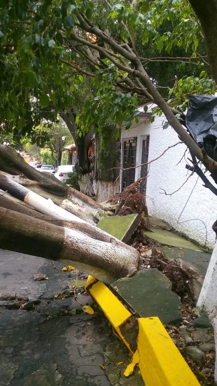 El director de protección civil del municipio de Cuernavaca, Enrique Clement Gallardo, informó que por las lluvias dos árboles colapsaron en la capital en la colonia Provincias de Canadá en la calle Ontario y Manitoba que afectaron fachadas y el colapso de una barda.