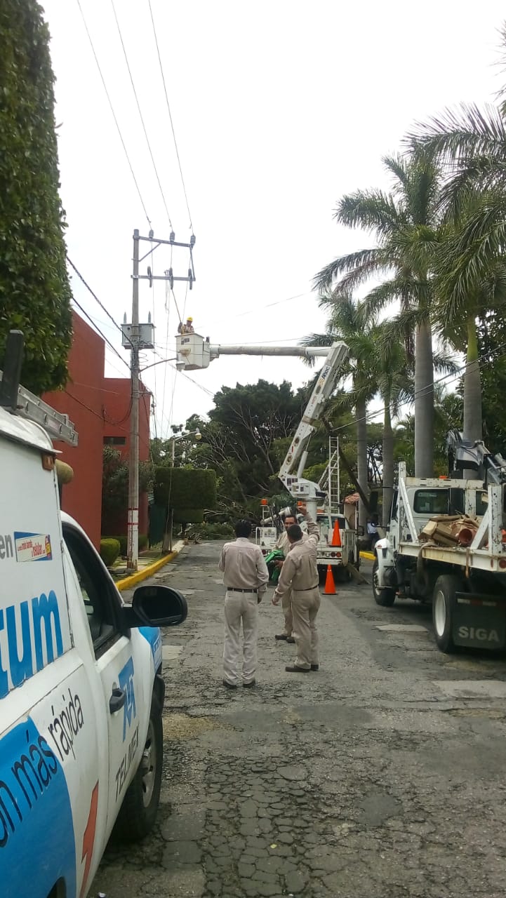 “Son árboles que se cayeron sobre algunas fachadas y se llevaron también tres postes de Teléfonos de México y otro de Comisión Federal de Electricidad por lo que fue complicado atender el servicio hasta que se tuviera la oportuna intervención de la Comisión Federal de Electricidad para empezar a trabajar en quitar el árbol que obstruía las entradas de la casa y el parte del arroyo vehicular”, dijo el funcionario.