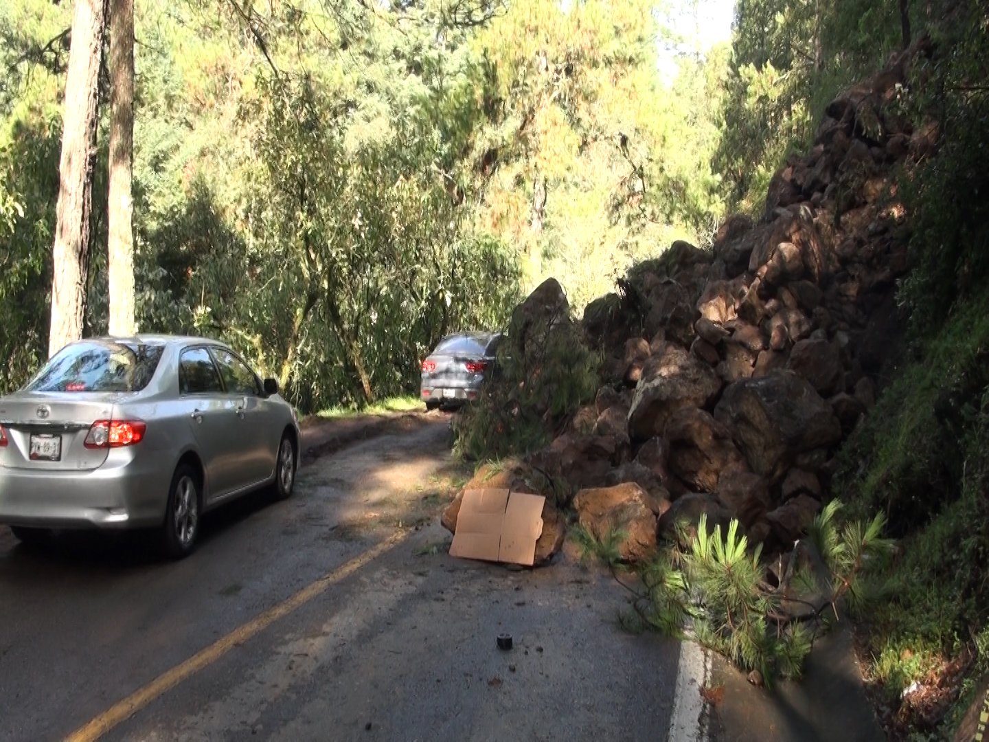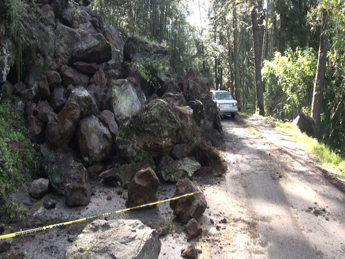 El derrumbe de piedra y lodo registrado en las inmediaciones del kilómetro 12 de la carretera que va de Huitzilac a las Lagunas de Zempoala, en los limites de Morelos con el Estado de México, no ha sido atendido por autoridades municipales ni estatales.