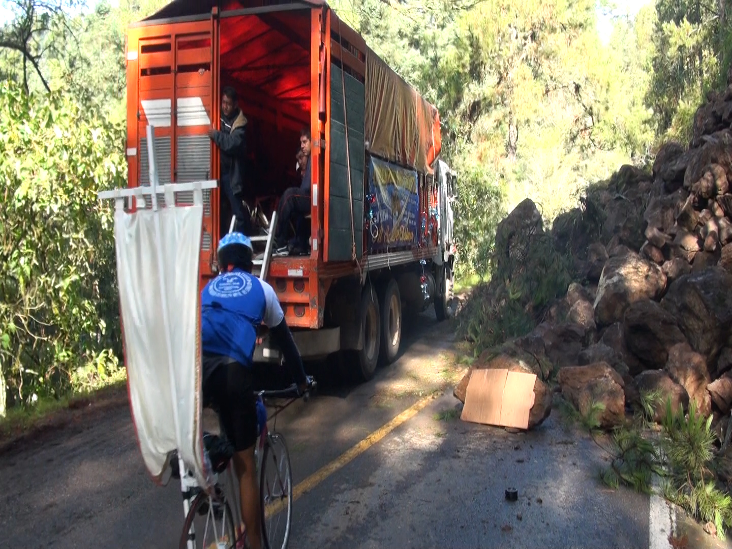 En el lugar no se registra la presencia de autoridad alguna que realice trabajos para remover el derrumbe y liberar la vía.