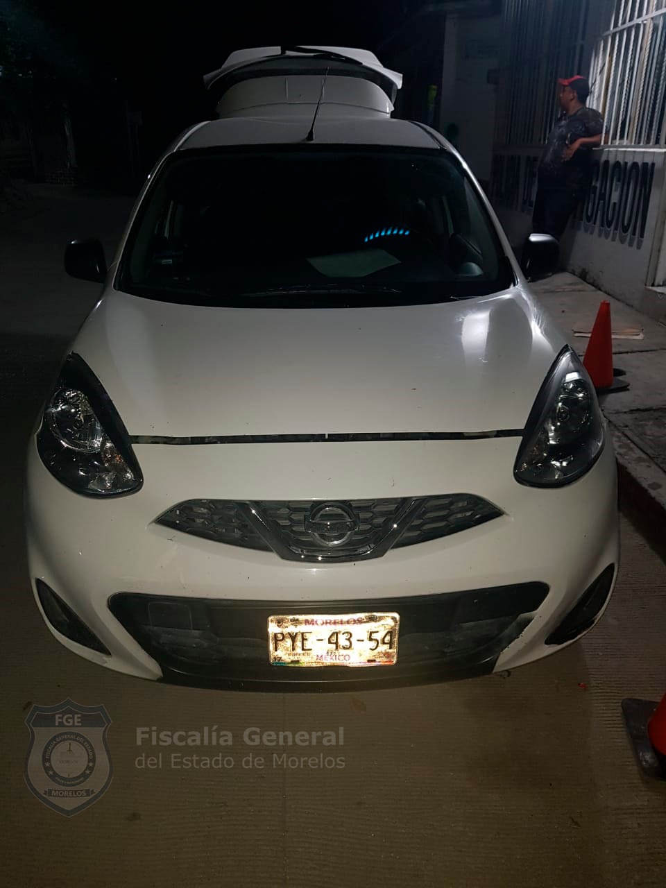 Al consultar el registro del vehículo Nissan, tipo March, color blanco, con placas de circulación PYE-43-54, del estado de Morelos, se corroboró que este cuenta con reporte de robo con violencia, cometido el 11 de octubre de este año en la cabecera municipal de Xochitepec.