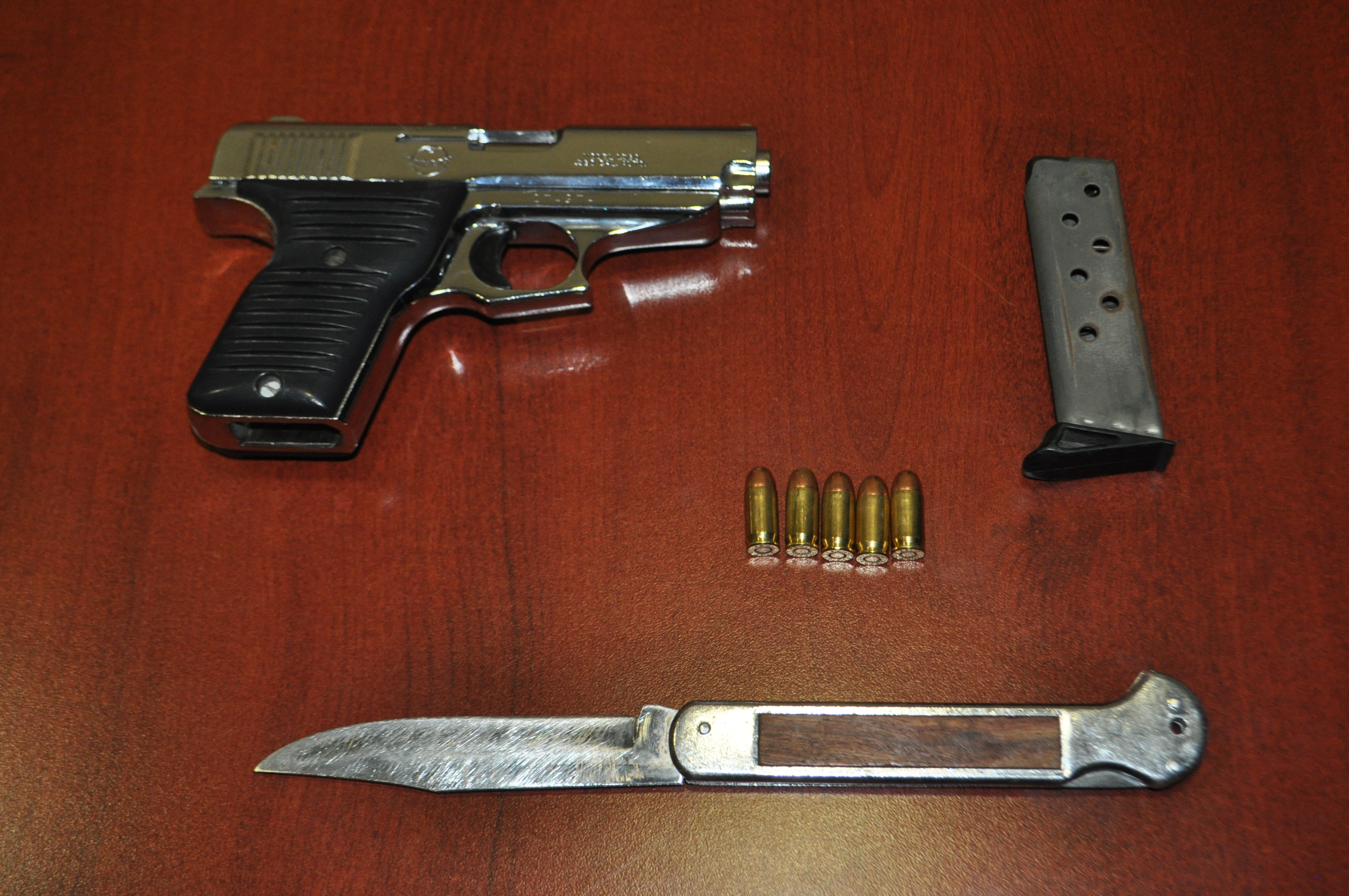 Por lo anterior, se inició un operativo de búsqueda y localización y ubicando el vehículo metros adelante, el conductor al notar la presencia policial intentó darse a la fuga pero les cerraron el paso, al realizar una revisión al interior del vehículo se localizó entre los asientos, un arma de fuego tipo pistola marca LORSIN, MODELO L380, calibre .380mm cal. auto, abastecida con cinco cartuchos útiles, y una navaja con hoja de filo de aproximadamente 11 centímetros de largo color plateada.