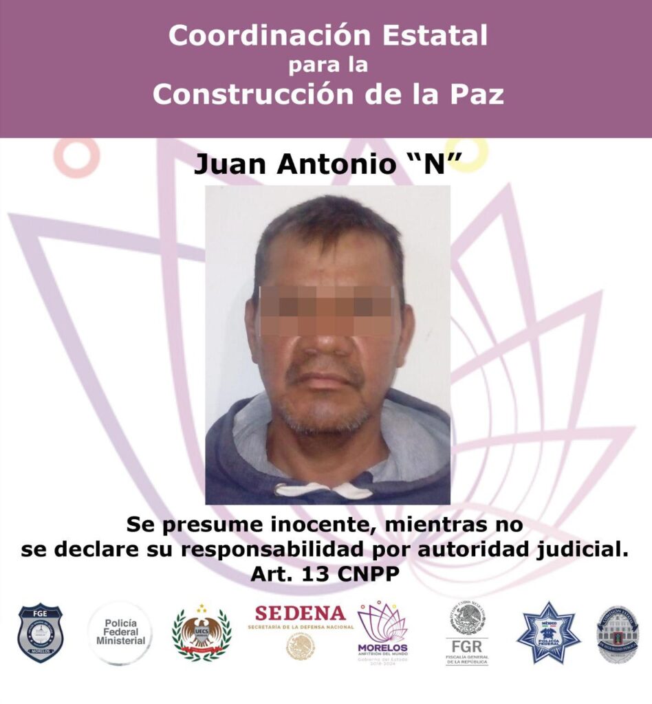 Gracias a la denuncia la Fiscalía de Delitos Contra la Mujer obtuvo la orden para la aprehensión de Juan Antonio, mandato cumplimentado por la Policía de Investigación Criminal el pasado 20 de mayo en Zacatepec.