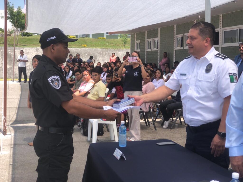 Acompañado del titular del Secretariado Ejecutivo del Sistema Estatal de Seguridad Pública, Contralmirante José Manuel Rodríguez Morales y del coordinador del Sistema Penitenciario, Jorge Israel Ponce de León Borquez; Ortiz Guarneros entregó reconocimientos a los primeros lugares en aprovechamiento.