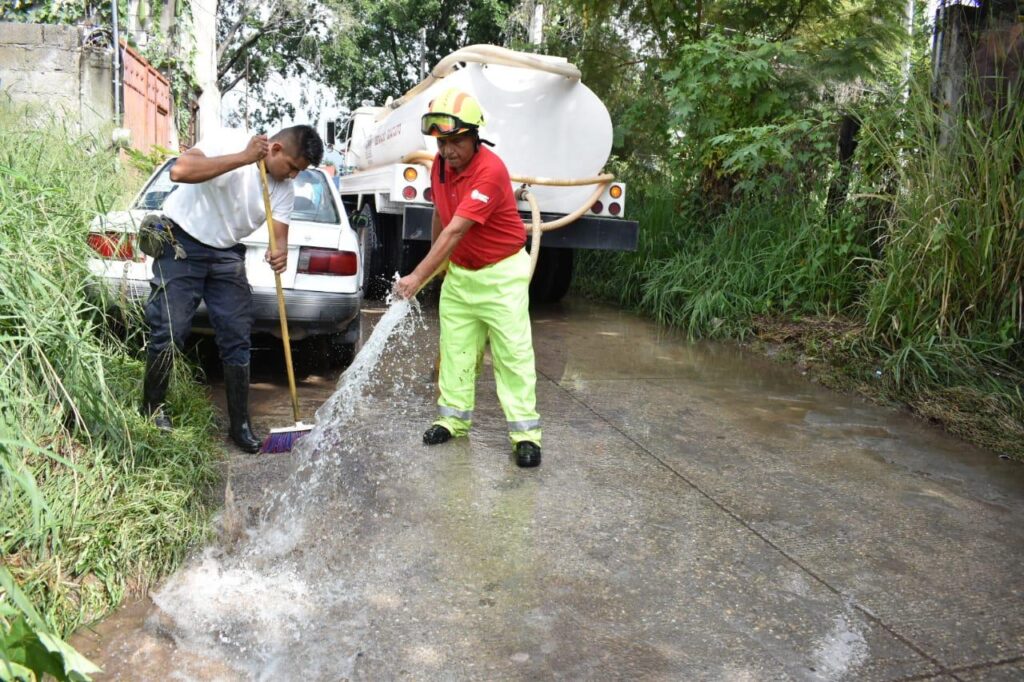 Francisco Javier Barona Téllez, director general de Protección Civil, informa que personal de las áreas que integran el Comité de Contingencias de Jiutepec, participan con la limpieza de calles y tinacos, tareas a cargo del Sistema de Conservación, Agua Potable y Saneamiento de Agua de Jiutepec (SCAPSJ), así como la aplicación de cal y nebulizaciones para combatir larvas de mosco.