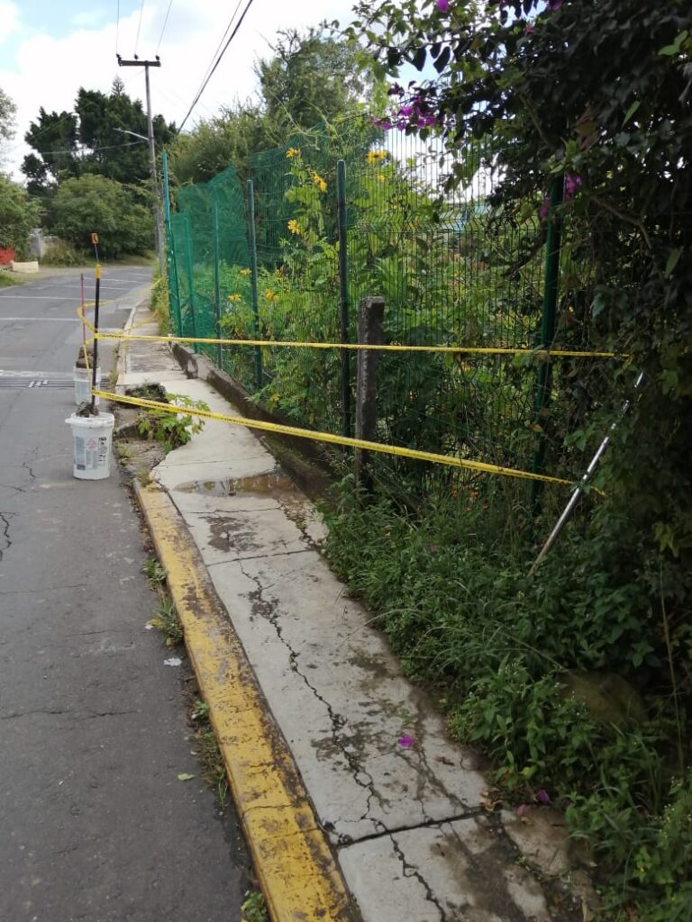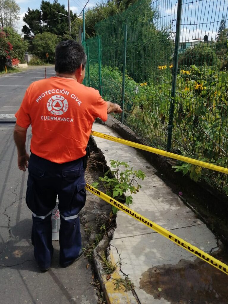 La Secretaría de Seguridad Pública de Cuernavaca, a través de la Subsecretaría de Protección Civil, informó que desde el pasado sábado 2 de noviembre, se tuvo conocimiento del desprendimiento de una porción de una barda de mampostería, próxima a un puente vehicular, localizada en avenida Subida a Chalma casi esquina Loma Bonita oriente, colonia Lomas Tetela.