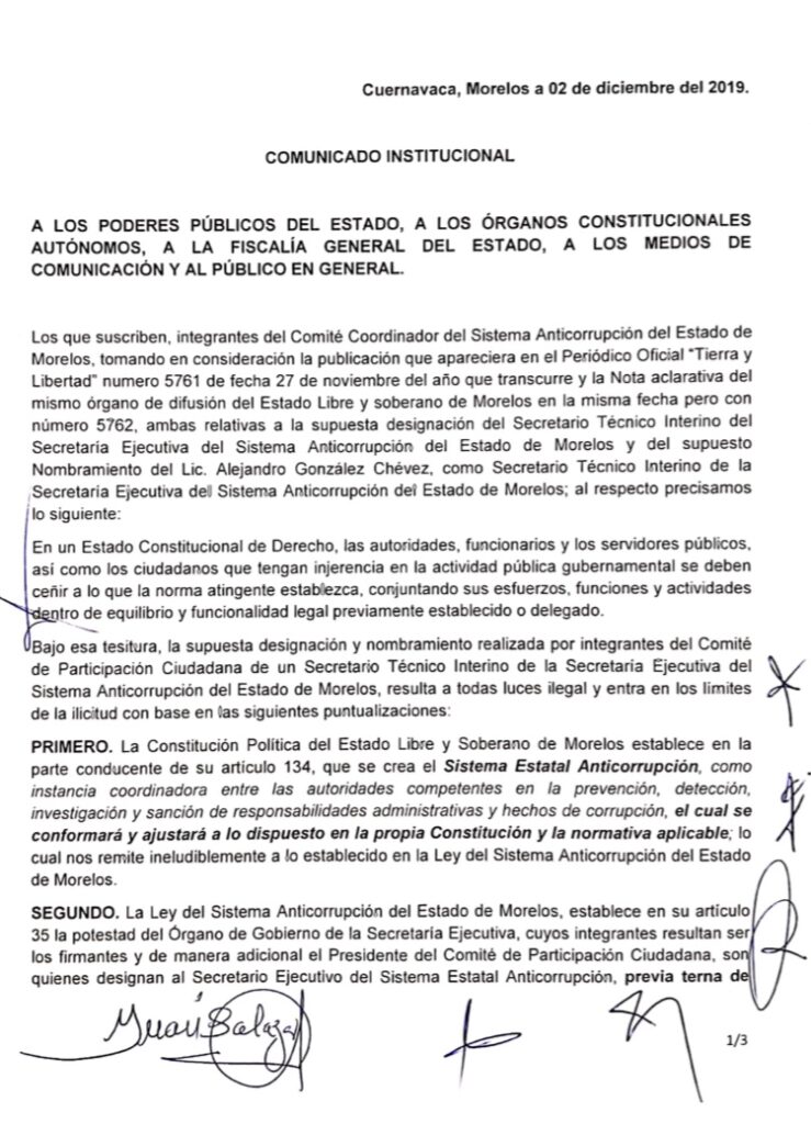 Rechazan poderes designación del secretario técnico interino de la Secretaría Ejecutiva del Sistema Anticorrupción 1 diciembre, 2019 2019-12-01 geovanni