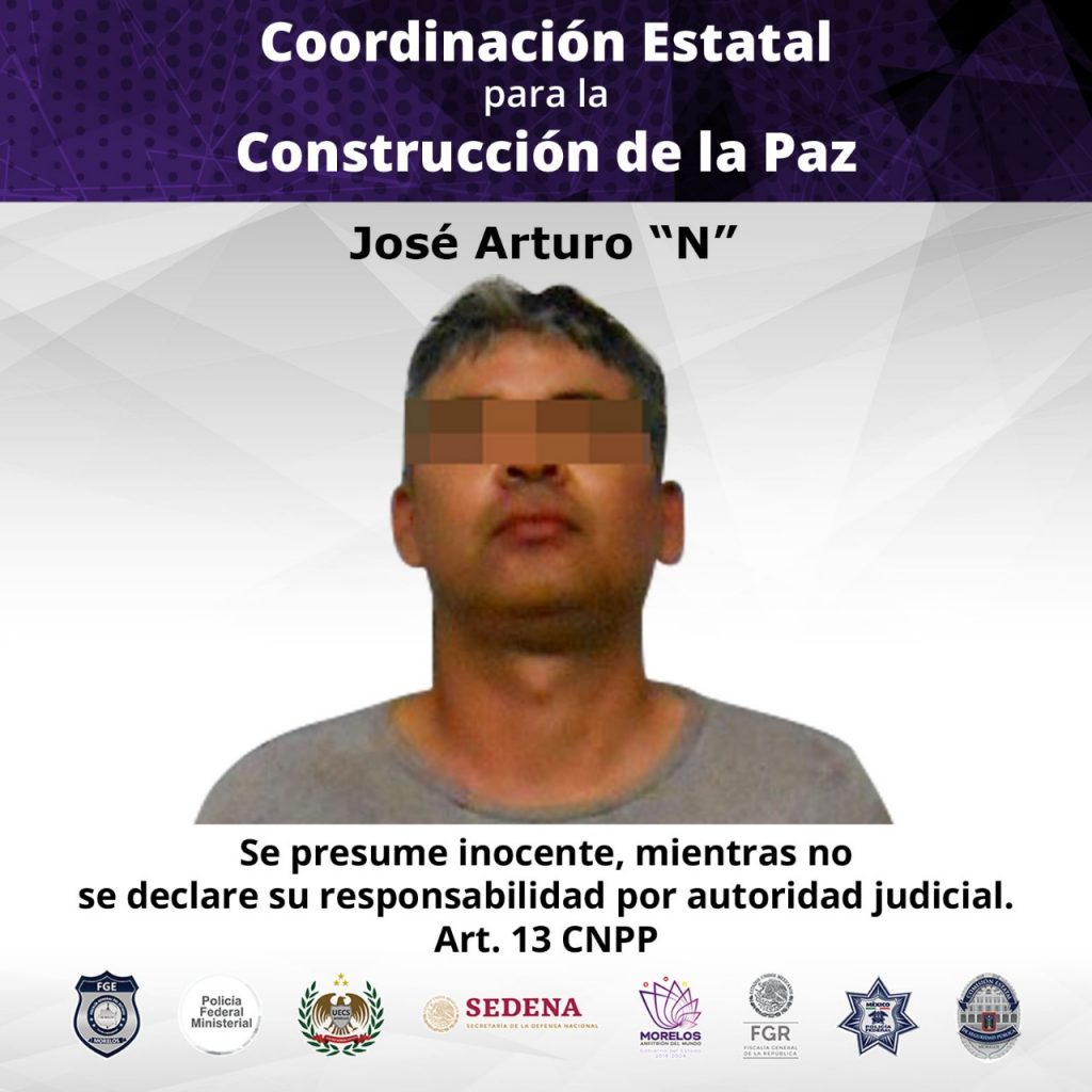 José Arturo “N” alias “El Maytuli”, es uno de los principales objetivos de las autoridades estatales y federales, integrados en la Mesa de Coordinación Estatal para la Construcción de la Paz, por lo que se reitera el firme compromiso de fortalecer la coordinación para garantizar a la sociedad morelense la paz y seguridad.