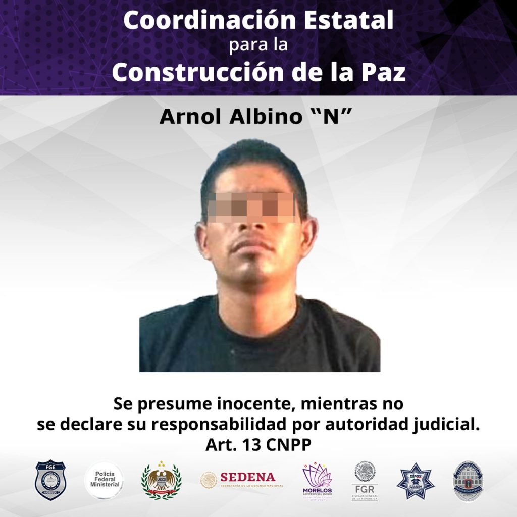Por otro lado, la noche de este jueves agentes de la Policía de Investigación Criminal (PIC) de la región Sur Poniente cumplimentaron la orden de aprehensión habida contra Arnol, por su posible participación en el homicidio de Víctor Manuel “N”, de 38 años de edad, cuyo cadáver se localizó cubierto con hierbas en una obra negra en la Colonia Alta Vista de Jojutla, el 29 de septiembre del año 2019.