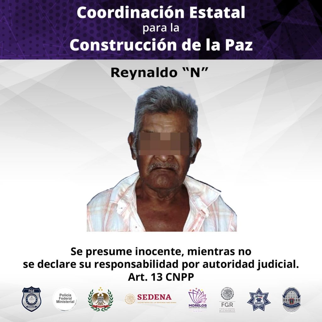 El Agente del Ministerio Público al integrar y judicializar la carpeta, el juez conocedor de la causa obsequia una orden de aprehensión en contra de Reynaldo “N” de 69 años de edad, cumplimentada por Agentes de la Policía de Investigación Criminal (PIC) en la Calle Morelos, de la Colonia Juan Morales del Municipio de Yecapixtla, poniéndolo a disposición ante la autoridad requirente.