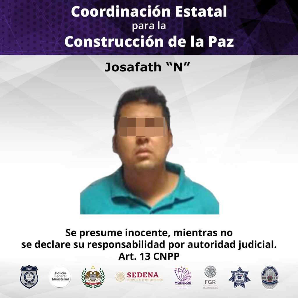 Resultado de las investigaciones, el Agente del Ministerio Público de la Fiscalía Metropolitana obtuvo de la autoridad judicial una orden de aprehensión en contra de Josafath “N” de 32 años de edad, cumplimentada por Agentes de la PIC sobre la avenida Chapultepec de la Colonia Atlacomulco perteneciente al Municipio de Cuernavaca.