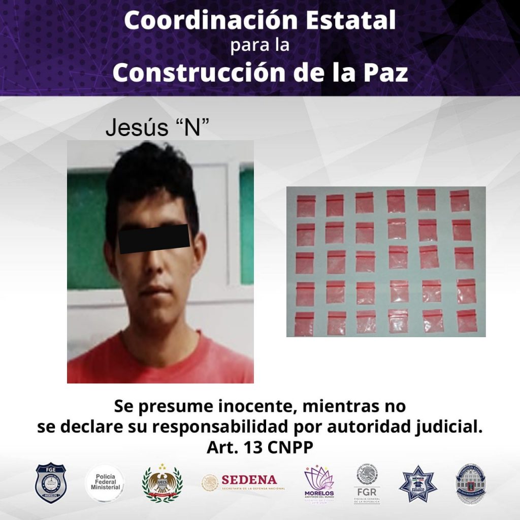El día de ayer, elementos que integran la Estrategia de Seguridad Mando Coordinado Policía Morelos, detuvieron a un hombre por delitos contra la salud, en el municipio de Jojutla.