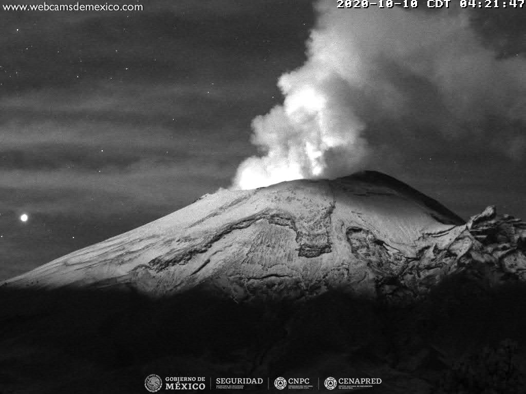 En las últimas 24 horas, mediante el sistema de monitoreo del volcán Popocatépetl se identificaron 106 exhalaciones acompañados por emisiones de gases volcánicos y en ocasiones ligeras cantidades de ceniza. Adicionalmente, se registraron 577 minutos de tremor.