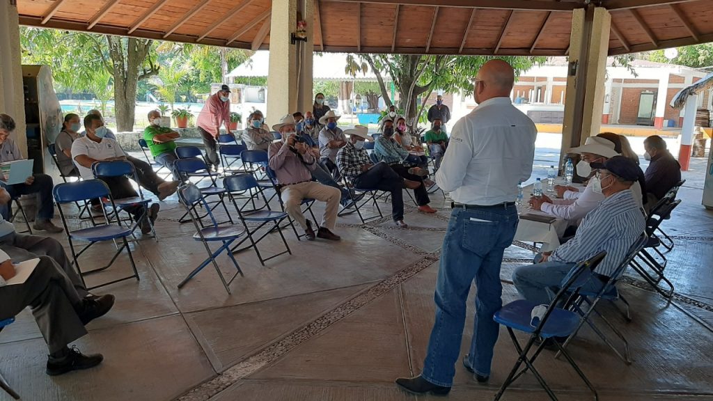En representación de Katia Herrera Quevedo, titular de la Secretaría de Desarrollo Agropecuario (Sedagro), Omar Taboada Nasser, director general de Agricultura y Agroindustria, se presentó a una reunión con productores de maíz blanco, en la que se les dio asesoría para acceder al programa federal “Precios de Garantía a Productos Alimentarios Básicos” impulsado por Seguridad Alimentaria Mexicana (SEGALMEX).