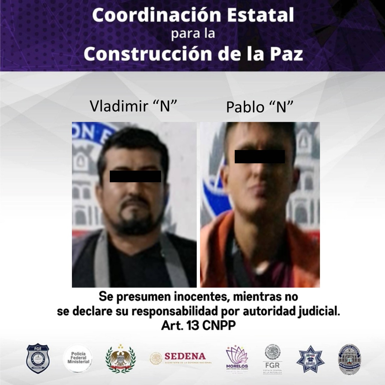Ante tales hechos, los oficiales detuvieron a Vladimir “N” de 47 años y Pablo “N” de 24 años de edad, mismos que fueron puestos a disposición del Agente del Ministerio Público del Fuero Común, autoridad que determinará su situación jurídica.