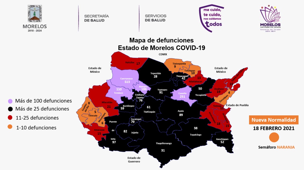 En Morelos se han confirmado 25 mil 263 casos con coronavirus COVID-19 y 2 mil 211 defunciones.