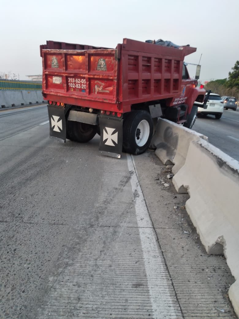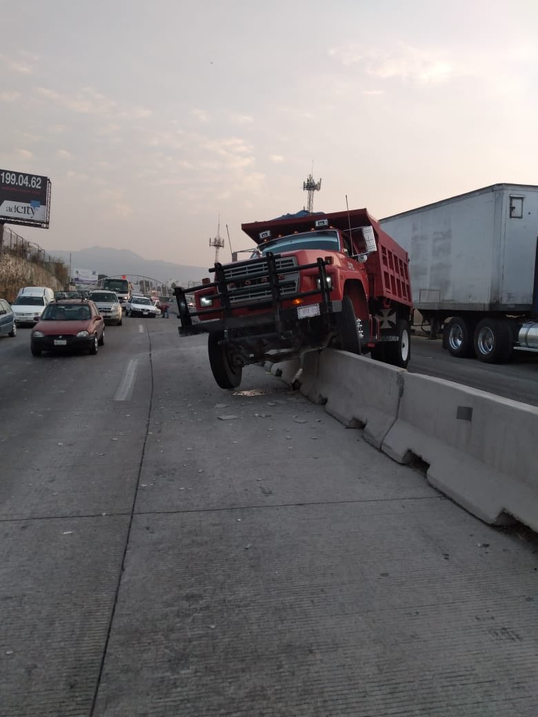 Si embargo, al registrarse este accidente los vehículos que venían atrás frenaron intempestivamente lo que provocó que muchos autos que venían a alta velocidad se frenaran, pero hubo quien no lo logró como un camión de volteo que baja alta velocidad y para evitar una carambola fue frenando el pesado camión con el muro de contención al grado que terminó sobre el muro.