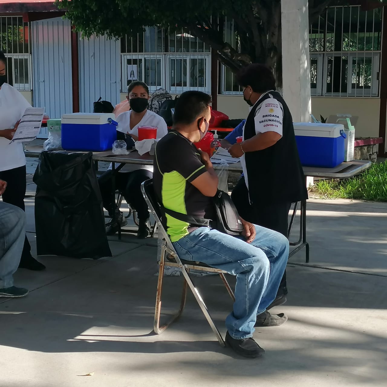 La sede fue en las instalaciones de la Escuela Secundaria Técnica 9, donde se acondicionó para recibir las persona en este día y mañana viernes que durará la aplicación de la Astra Zeneca.