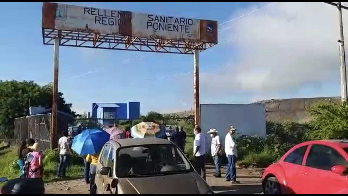 Vecinos y ejidatarios bloquearon los accesos a camiones y maquinaria al relleno regional sanitario de la zona sur poniente con sede en Mazatepec en los campos del «Jabonero» desde las 5 de la mañana de este lunes.