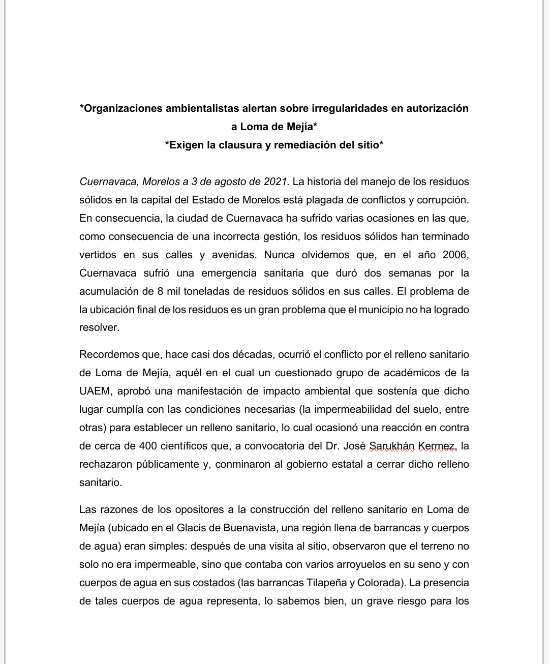 Ambientalistas respaldan a pobladores de Temixco y Cuernavaca que se oponen a que el relleno sanitario de Loma Mejía siga operando