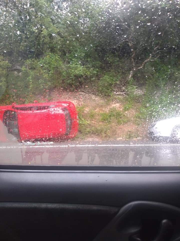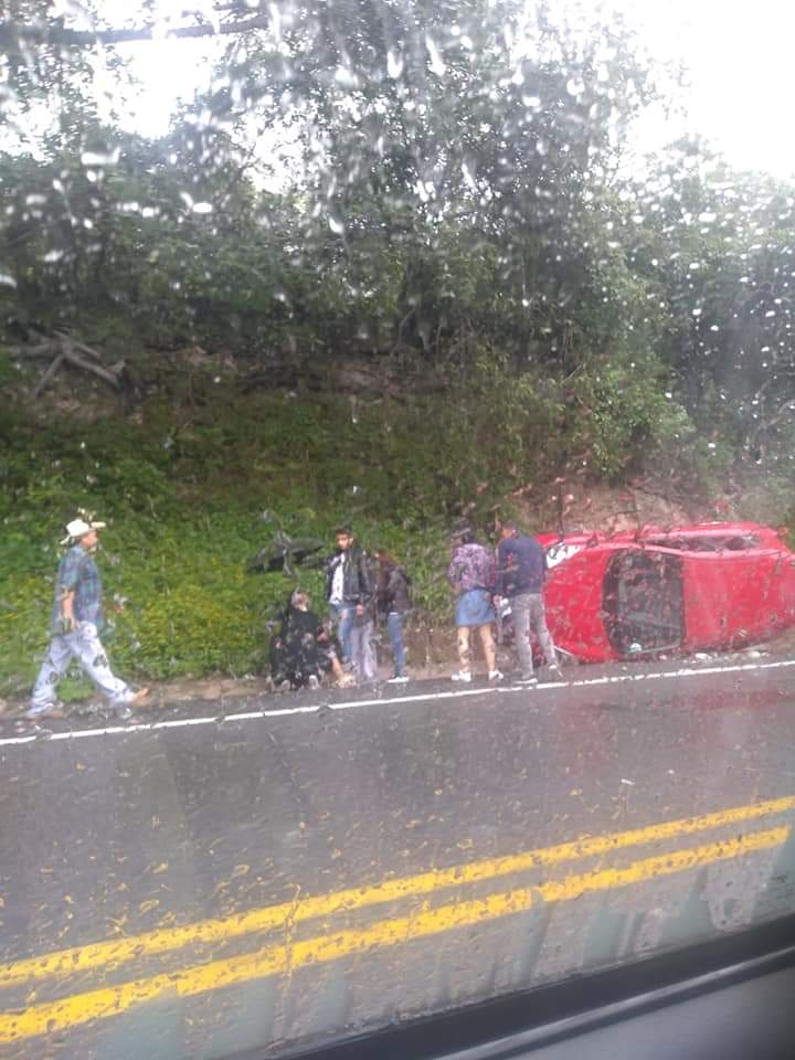 En los hechos se vieron involucrados un tráiler una camioneta y un automóvil color rojo tipo March, en donde este último volcó, esto deacuerdo con un testigo que transitaba por el lugar, quién asegura que aún no llegaba el apoyo.